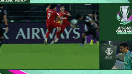 在对U23国足的半决赛里,阮庭北没有首发出场,此役则重返首发阵容,他也抢尽了风头,先是为阮国越助攻。随后,阮庭北禁区内解围时对手倒地,主裁判先是判罚点球,随后回看慢镜头之后取消点球。