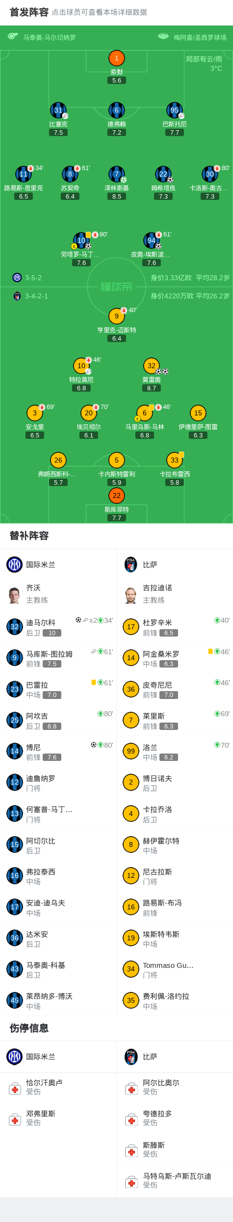 第11分钟,索默传球被断,莫雷奥迎球直接吊射破门,国米0-1比萨